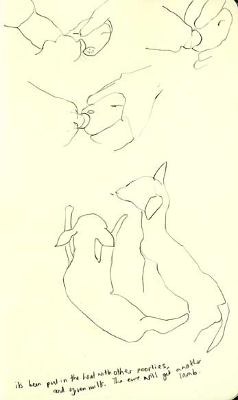 She tried to leap off the ‘Gator’ after her lamb had been removed. It’s been put into the heat with other poorlies, and given milk. The ewe will get another lamb.