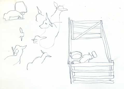 For some reason, Teeny was on her own today. Chewing grass and sniffing. Lambs in the ‘hospital’ didn’t get lunch today, getting bigger now.