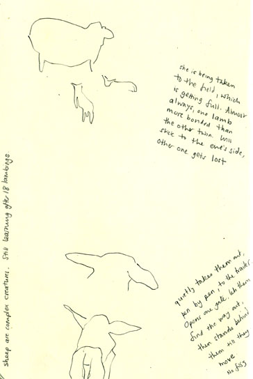 “Sheep are complex creatures, still learning after 18 years.”.. The ewe is being taken to the field, which is getting full. Almost always one lamb is more bonded than the other twin. Will stick to the ewe’s side, the other one can get lost.