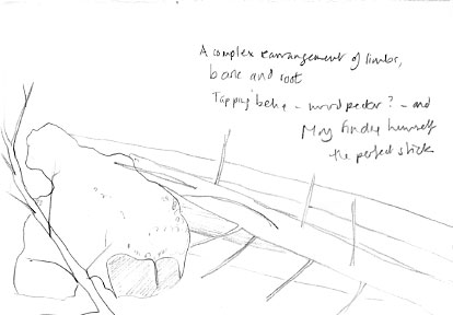 Getting as far as I can, details become apparent. My mind makes some kind of pattern of things. No such thing as a balance of nature – this is a temporary rearrangement.