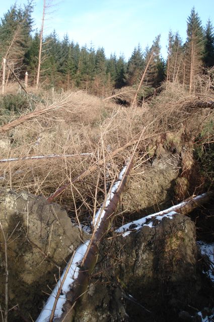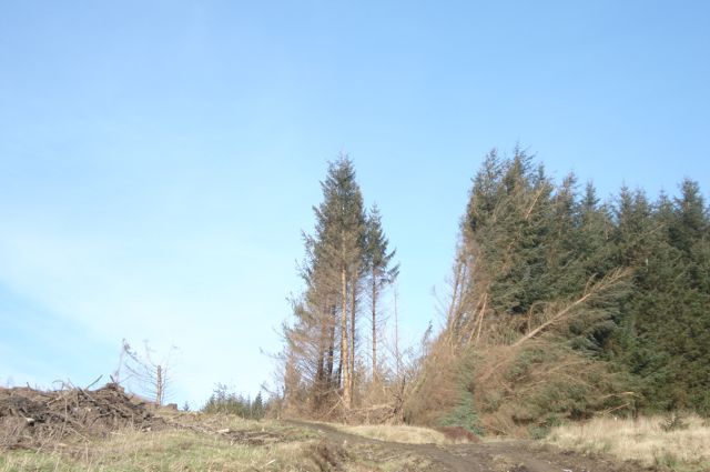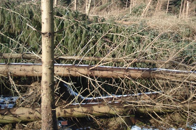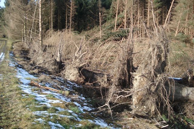 In taking its crop of trees last year, euroforest exposed stands that had been protected. The series of storms over the winter took their toll and the most recent hurricane in January has left a wake.
