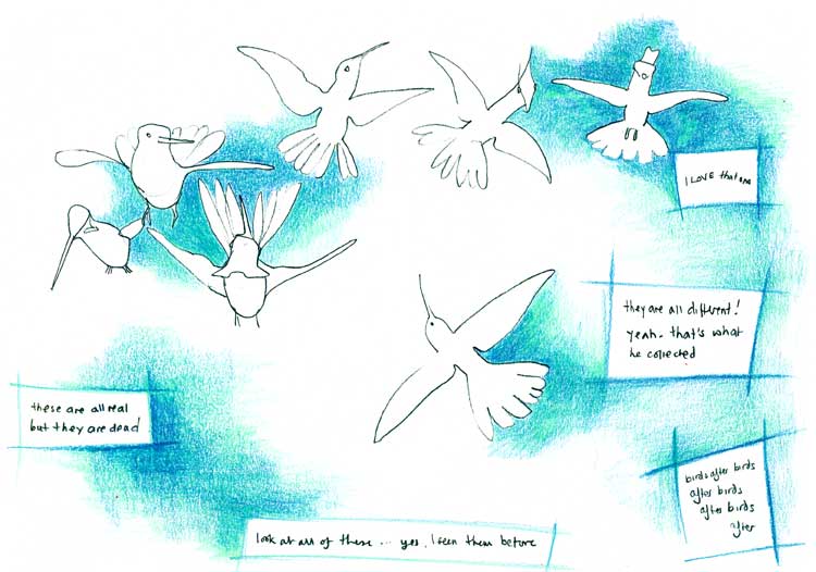 As I drew, I found passers-by were echoing my own reflections. There was much curiousity about these stilled birds, some of which may now be extinct.