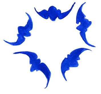 Only with expert assistance, could I detect bats at roost – around a Chinese good luck sign in the Blue and White ceramics cabinet.