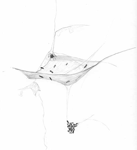 Between the sieves, in the corner of the white-washed shed, there is a quiet sign of bats’ presence – droppings caught in gossamer, testing the strength of spider silk.