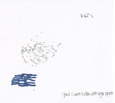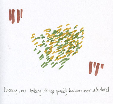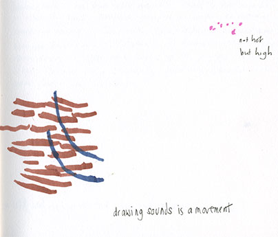 Drawing sounds becomes a movement. I compromise with half-closed eyes, but the midges have found me.